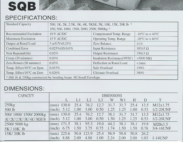 NTEP Class III 5000M 對于 SQB系列,SQB-F和SQB-SS可用于1k-10klb