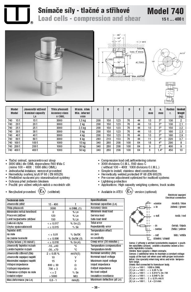 詳細(xì)特征: 標(biāo)準(zhǔn)量程:100-200-400t 精度等級:1000n. OIML 最小靜載:0% Ln 負(fù)載:120% Ln 安裝負(fù)載限制:150% Ln 總誤差<±0.05%Sn 重復(fù)性誤差 <±0.015%Sn 溫度零度漂移 <±0.01%Sn/5K 靈敏度溫差影響 < <±0.018%Sn/5K 蠕變誤差(30分鐘)<±0.048%Sn/5K 溫度補(bǔ)償: -10 to +40 °C 溫度范圍: -20 to +70 °C 標(biāo)稱靈敏度(Sn): 2± 0.5% mV/V 額定輸入電壓: 10 V 最大輸入電壓: 15 V 輸入阻抗: 800 ± 300 Ohm 輸出阻抗: 700 ± 30 Ohm 空載輸出<±2%Sn 絕緣電阻 > 5000 MOhm 最大偏差(at Ln):1.4-2.6mm