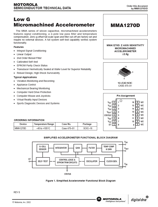 | 產(chǎn)品名稱:MMA1270D 加速度傳感器(accelerometer) |