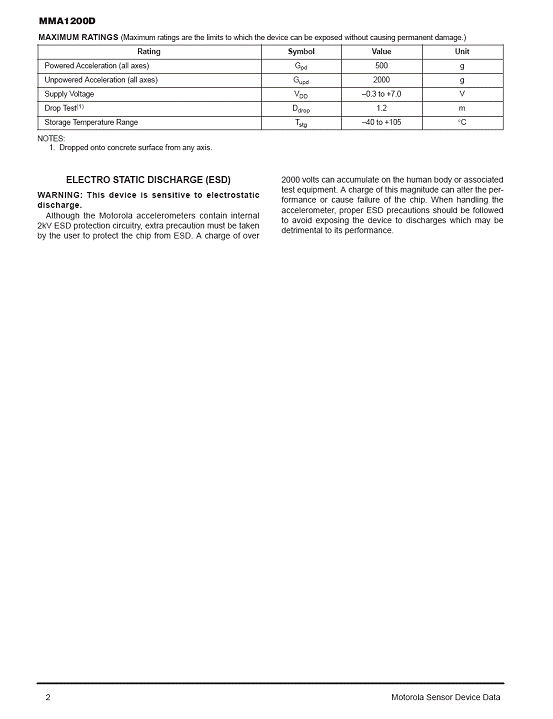 MMA1200D 加速度傳感器(accelerometer)