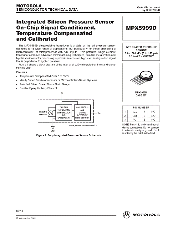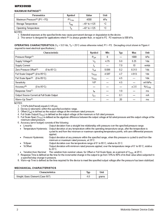 MPX5999D 氣壓傳感器(sensor)