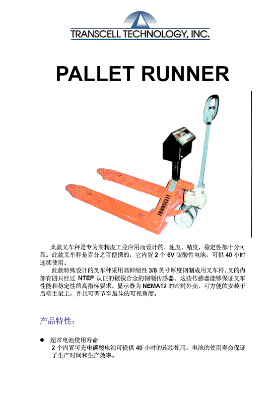 | 產(chǎn)品名稱:Transcell PALLET RUNNER 叉車秤(scales) |