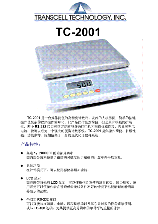 | 產(chǎn)品名稱:Transcell TC-2001 計數(shù)秤(scales) |