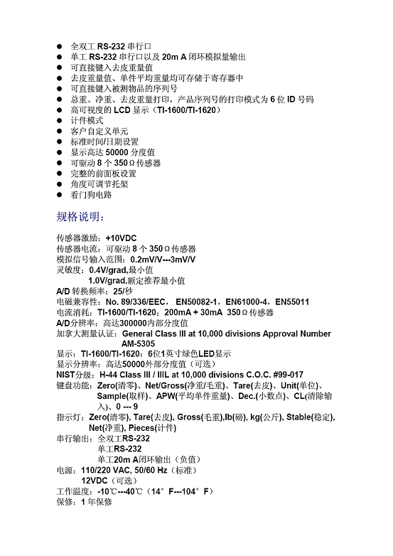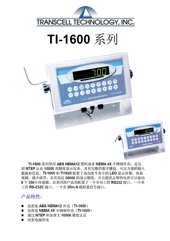 | 產(chǎn)品名稱:Transcell TI-1600 高精度顯示儀表(Indicator) |
