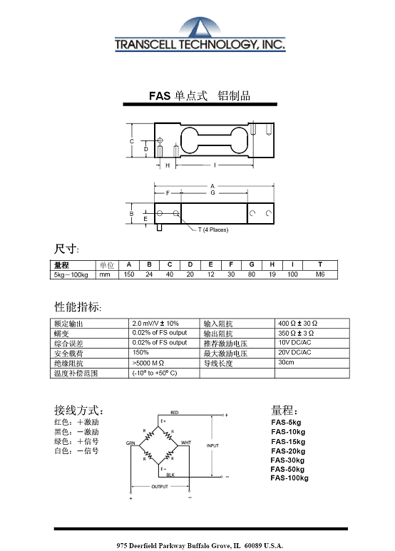 | 產(chǎn)品名稱:Transcell FAS 單點(diǎn)式稱重傳感器(load cells) |