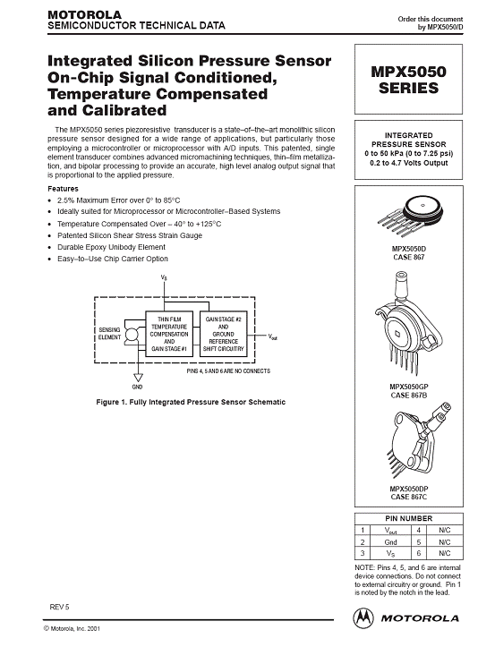 MPX5050 氣壓傳感器(sensor)