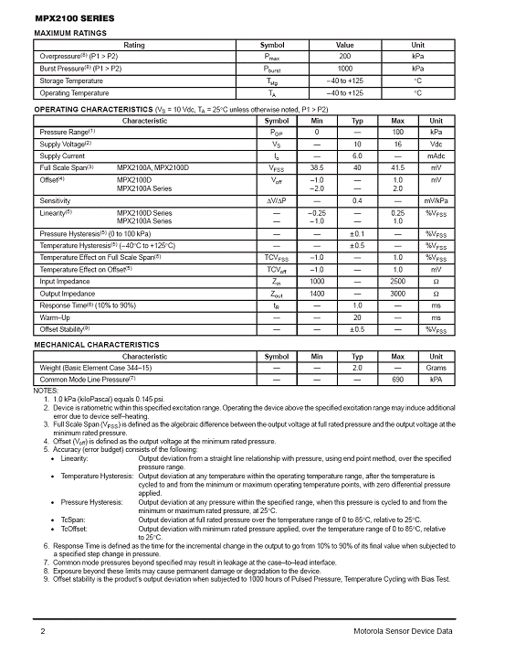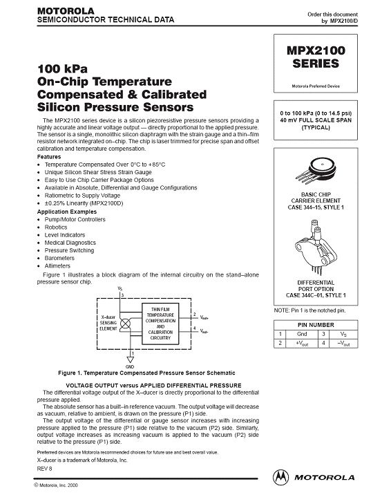 MPX2100 氣壓傳感器(sensor)