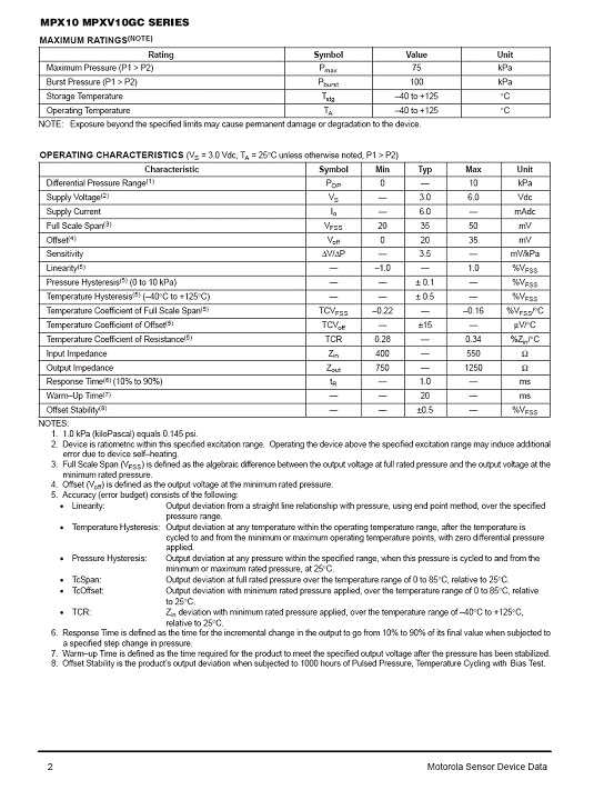 MPX10 氣壓傳感器(pressure sensor)