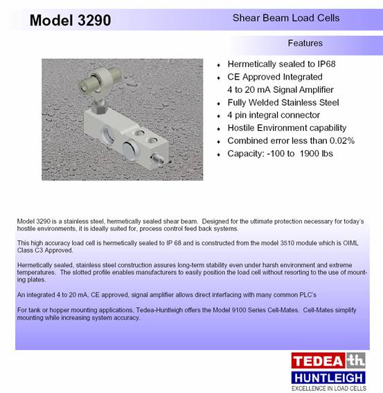 | 產(chǎn)品名稱:Tedea 3290 稱重傳感器(load cells) |