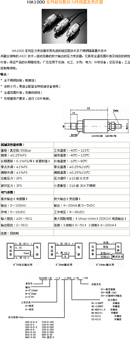 | 產(chǎn)品名稱:HA1000系列 硅壓阻壓力傳感器(pressure sensor) |