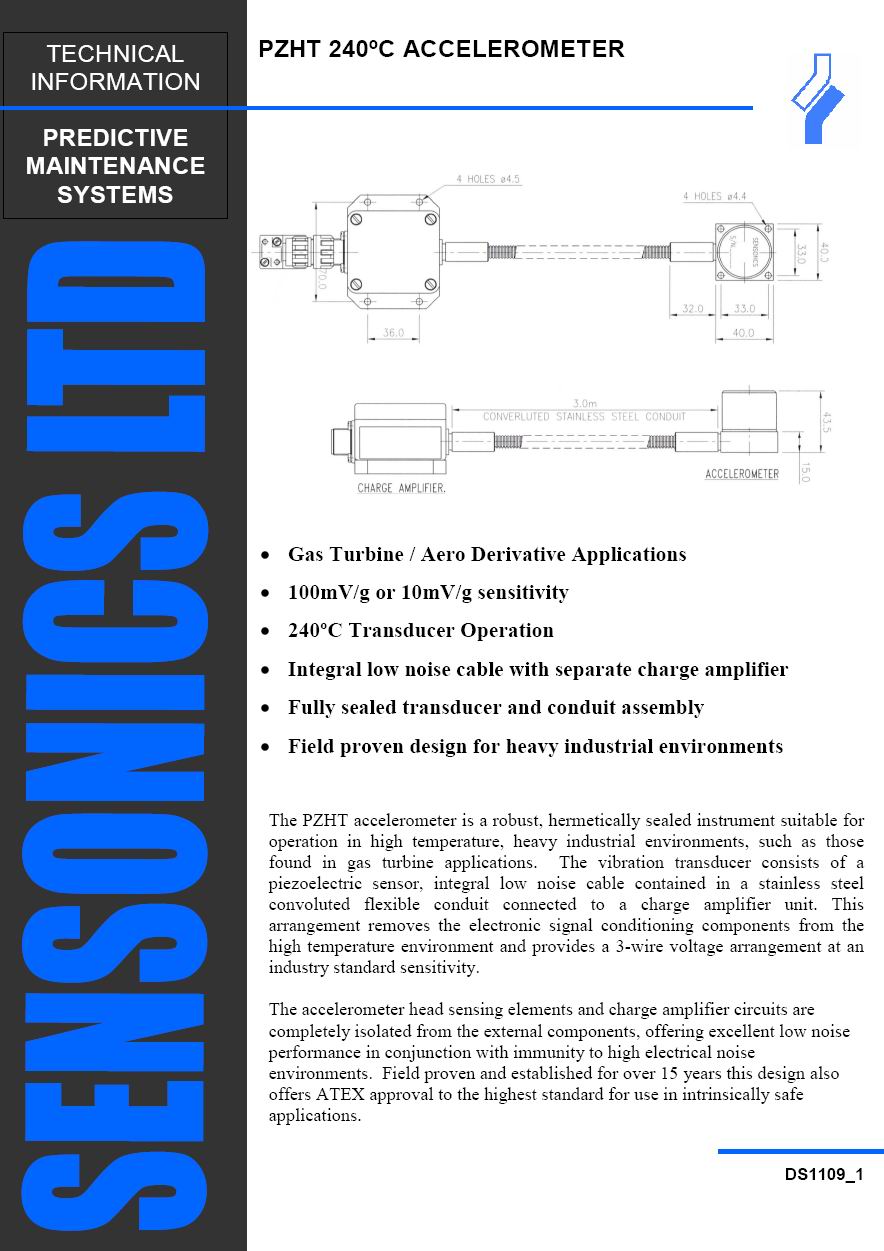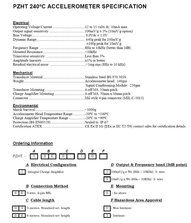 PZHT / PZHT2 High Temperature Accelerometer