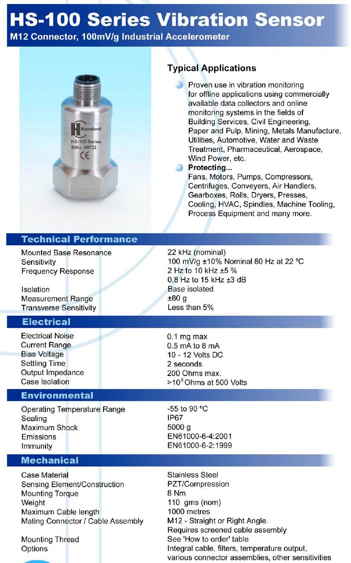 產(chǎn)品名稱:HS-100 加速度傳感器 (acceleration sensor)